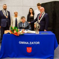 Jednym ze strategicznych punktów sesji było wręczenie przez Burmistrza Zatora oraz Przewodniczącego Rady Miejskiej w Zatorze wyróżnienia „Zasłużony dla Ziemi Zatorskiej” Panu Franciszkowi Sałaciakowi. Uroczystej laudacji dokonał Prezes Stowarzyszenia Doliny Karpia Pan Mariusz Makuch, jeden z wnioskodawców wyróżnienia.