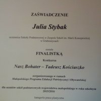 Uczniowie Zespołu Szkół im. M. Konopnickiej w Garaboszycach: Czopek Agnieszka, Janas Mateusz, Kokoszka Emilia, Pytel Karolina oraz Stybak Julia są finalistami (w kategorii praca plastyczna )Wojewódzkiego konkursu „Nasz Bohater – Tadeusz Kościuszko”