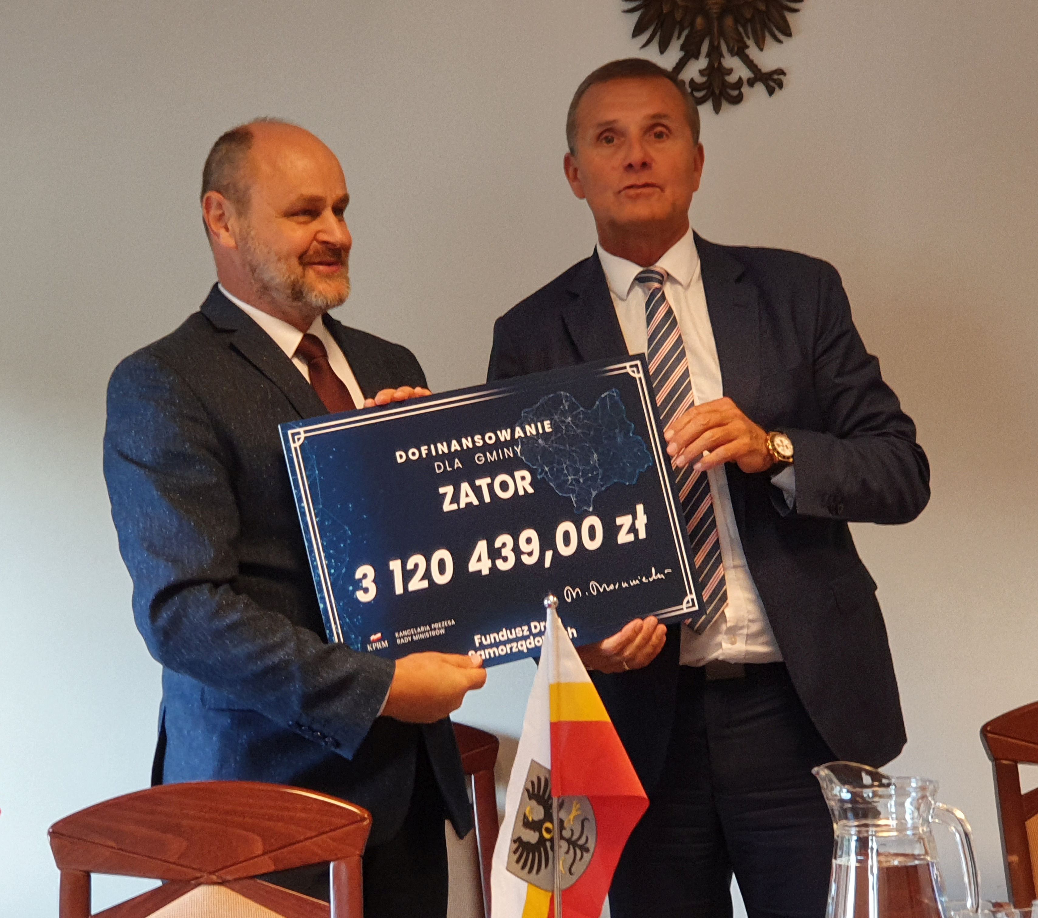 W dniu 19.09.2019r. w Oświęcimiu Burmistrz Zatora Mariusz Makuch odebrał z rąk Wicewojewody Zbigniewa Starca promesę na przebudowę ul. W. Grabskiego w Zatorze. Wartość promesy wyniosła 3.120.439,00 zł co stanowi 50 % kosztów kwalifikowanych inwestycji. Pozostałe środki pochodzić będą po połowie, z budżetu Gminy Zator oraz z darowizny od Energylandii. Ostateczna wartość inwestycji znana będzie po przetargu. Przebudowa tej drogi usprawni komunikację i powinna znacznie zmniejszyć korki nie tylko w obrębie ronda, ale również w całej gminie.