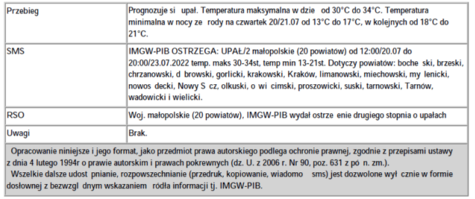 W związku z powyższym proszę podjąć stosowne działania zapobiegawcze i ostrzegawcze związane z ostrzeżeniem ludności oraz przygotować odpowiednie służby.