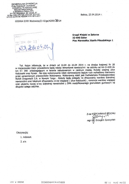 Informacja o remoncie Drogi Krajowej DK28 2014-04-22