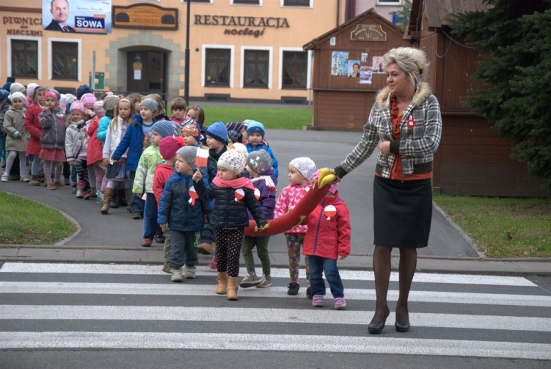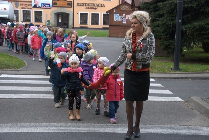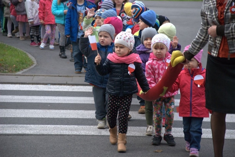 Dzieci z przedszkola obchodzące Święto Niepodległości