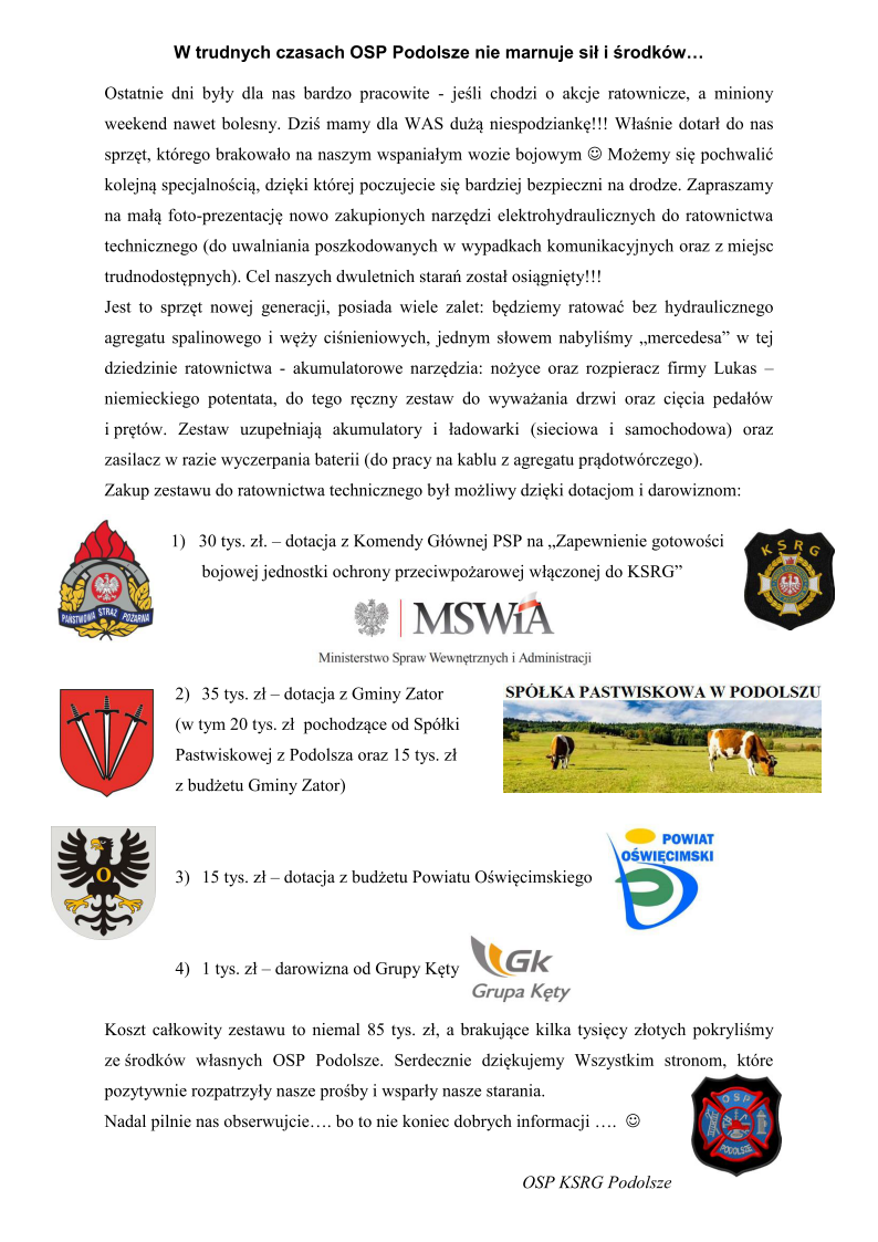 W trudnych czasach OSP Podolsze nie marnuje sił i środków…