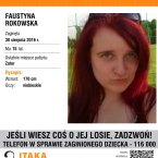 Fundacja ITAKA – na prośbę rodziny i we współpracy z policją prowadzi poszukiwania zaginionej Faustyny Rokowskiej