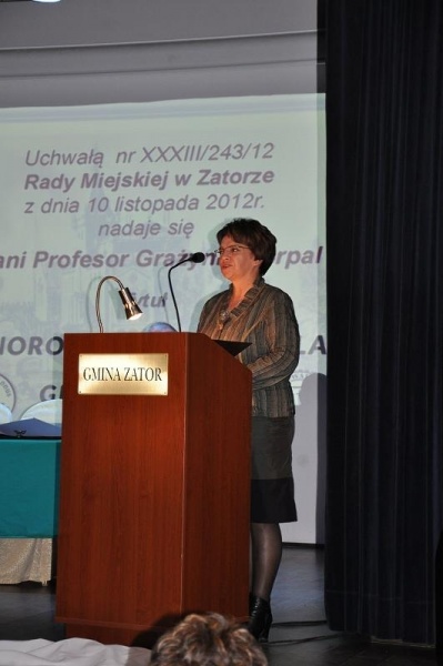 Uroczystość otworzył Przewodniczący Rady Miejskiej Stanisław Orlicki który przywitał gości oraz przedstawił program uroczystej sesji. Sylwetkę Profesor Grażyny Korpal zaprezentowała Sekretarz Zatora Bogusława Smreczyńska.