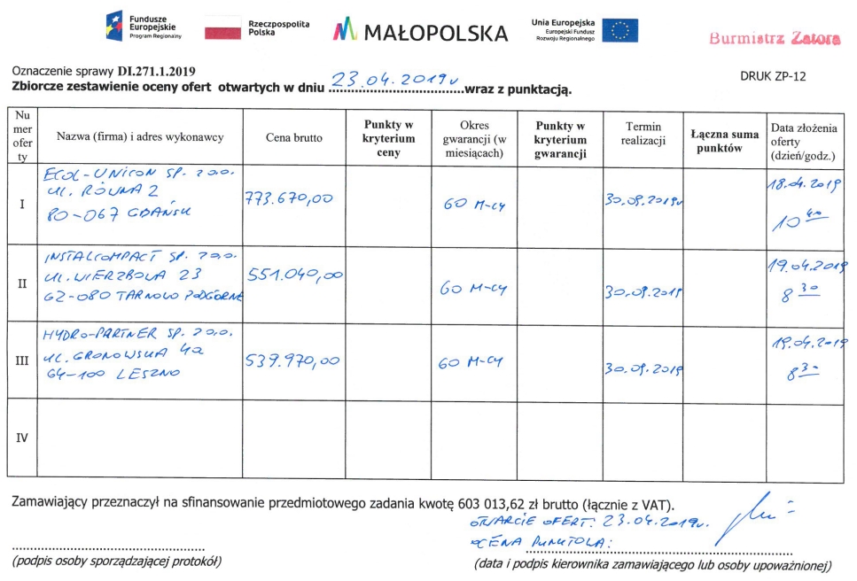 Zator, dnia 23.04.2019 r.