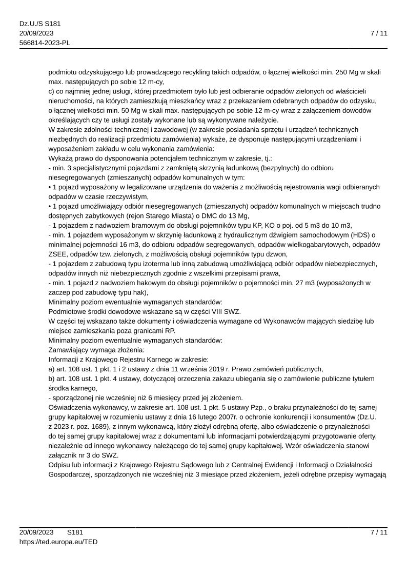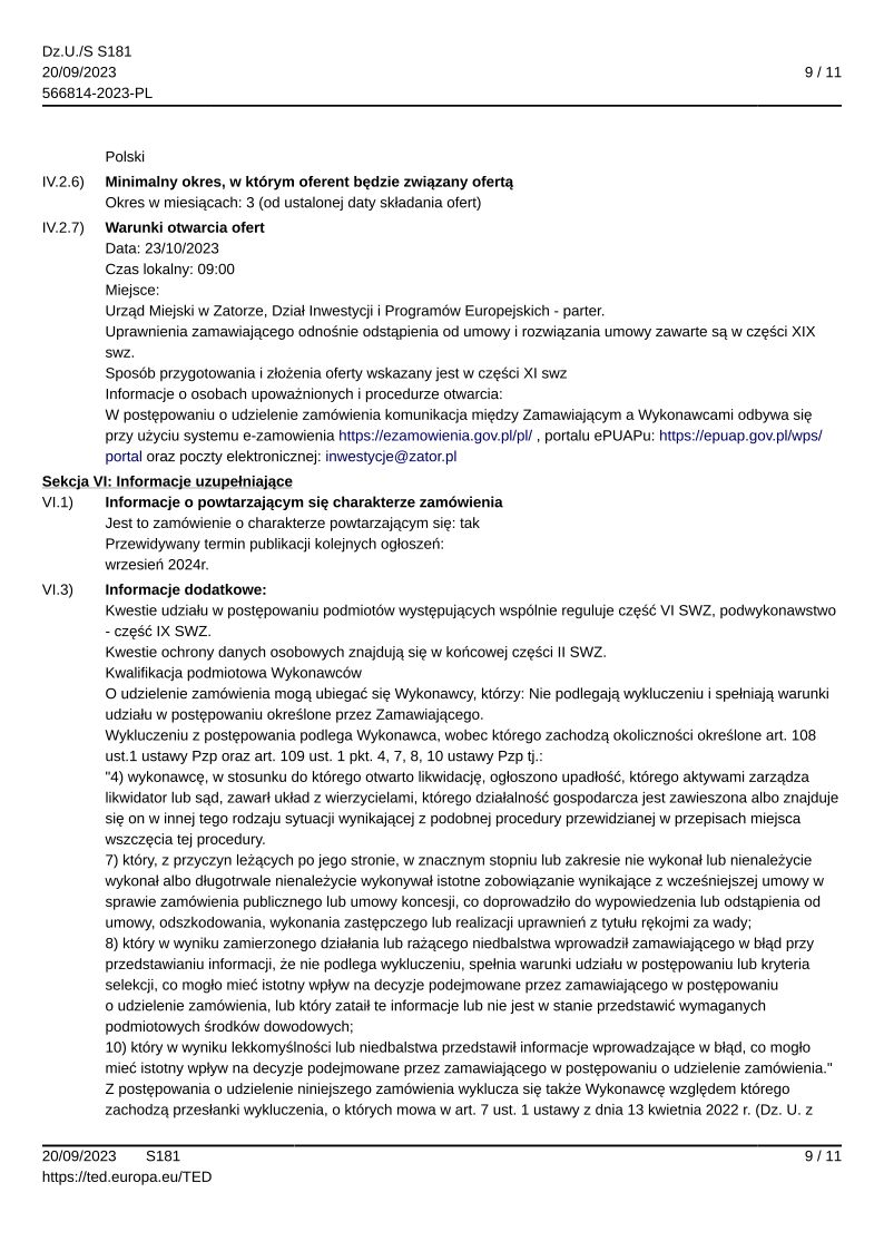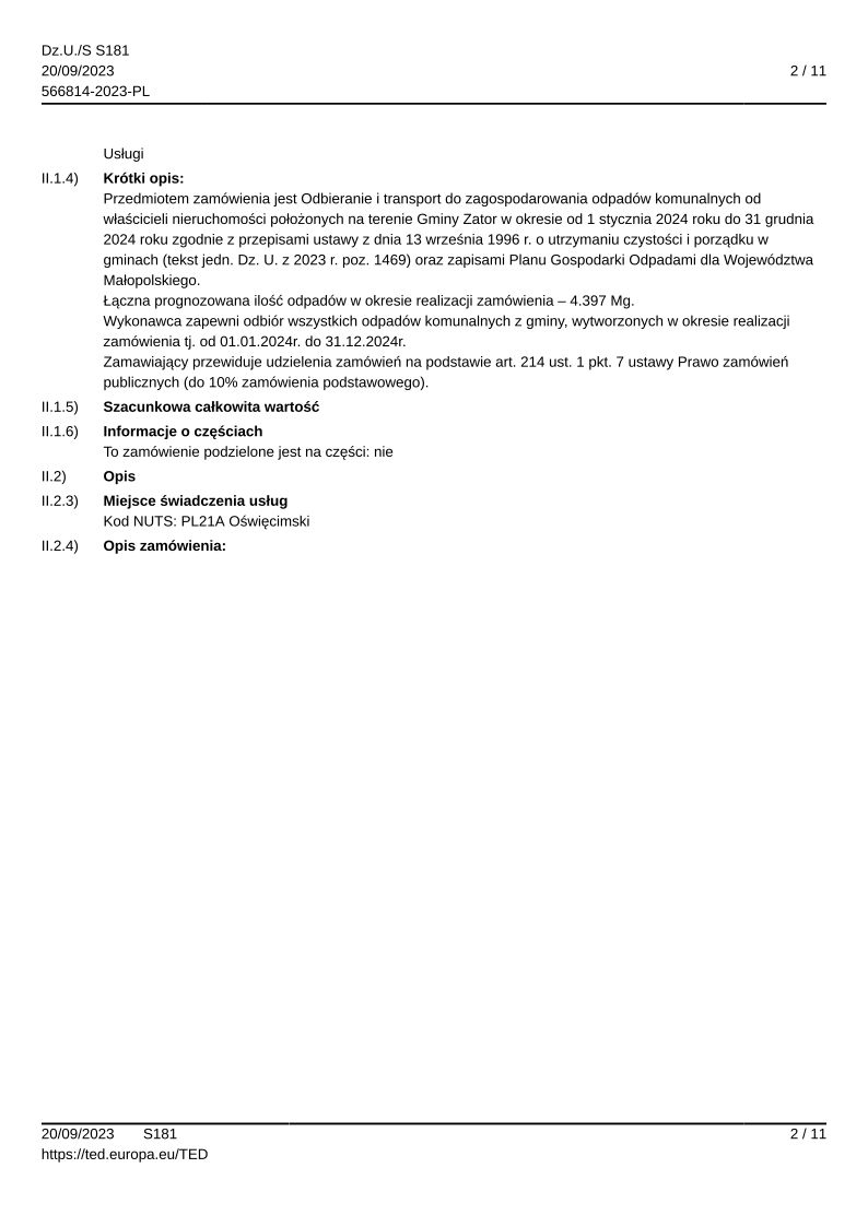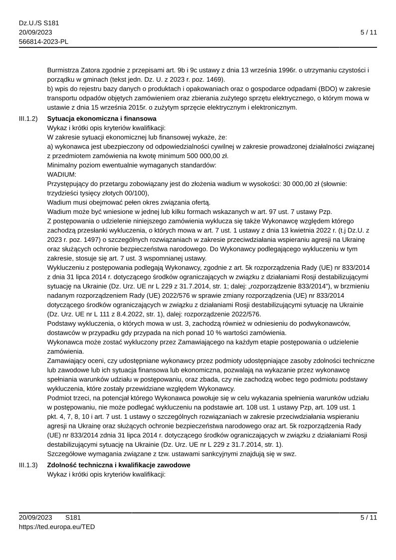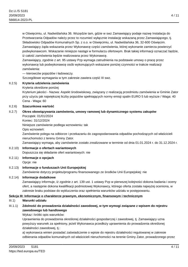 DI.271.9.2023 „Odbieranie i transport do zagospodarowania odpadów komunalnych od właścicieli nieruchomości położonych na terenie Gminy Zator w okresie od 1 stycznia 2024 roku do 31 grudnia 2024 roku”