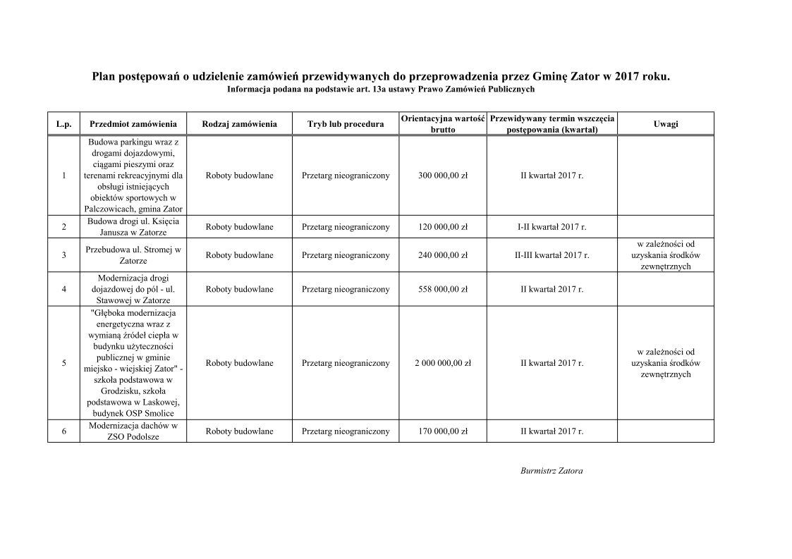plan postępowań o udzielenie zamówień na 2017.pdf | 17-01-27 08:53 | 26.23KB | pobierz |