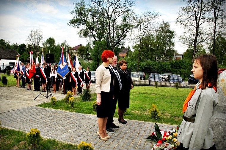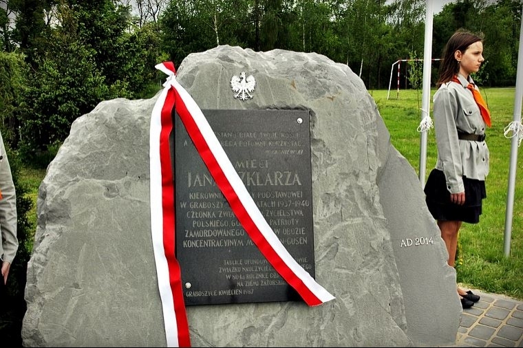 Następnie przy dźwiękach werbli wszyscy udali się do Miejsce Pamięci Narodowej, które zostało poświęcone przez księdza proboszcza – Jacka Wieczorka. Zwieńczeniem uroczystości było odsłonięcie tablicy przez Pana Andrzeja Szklarza - syna Jana Szklarza. Potem zabrał on głos i wspominał zamordowanego ojca oraz swoje dzieciństwo spędzone w Graboszycach. Kilka refleksyjnych słów dodali także zaproszeni goście, którzy w swoich wypowiedziach podkreślali, iż Nauczycielski Dzień Pamięci i Pokoju to wspaniała lekcja historii oraz okazja do przekazywania potomnym określonego przesłania, a także budowania ich tożsamości narodowej. Odczytano również list burmistrza gminy Zator oraz księdza Eugeniusza Leśniaka. Na koniec delegacje gości, władz i młodzieży złożyły w tym szczególnym miejscu kwiaty oraz zapaliły znicze. Warto dodać, iż podczas trwania uroczystości honorową wartę przy Miejscu Pamięci Narodowej pełnili harcerze i zuchy z Zespołu Szkół im. Marii Konopnickiej w Graboszycach. To doniosłe dla wszystkich wydarzenie zakończyło wspólne odśpiewanie „Roty” – hymnu szkoły.