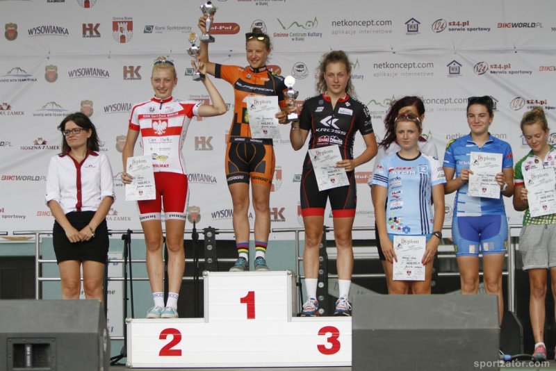 W Białej koło Prudnika zorganizowana została kolejna edycja Pucharu Polski w kolarstwie górskim. Zawodniczki UKS Sokół Zator zdominowały kategorię elity kobiet, U23 kobiet oraz juniorki. Swoje Wyścigi wygrały zarówno Rita Malinkiewicz jak i Gabriela Wojtyła tuż za podium kategorii juniorek młodszych uplasowała się Karolina Włoch. Dzielnie walczyli też nasi Panowie - Michał Śliwiński zajął drugie miejsce wśród młodzików a Paweł Prudło po ponad dwugodzinnym wyścigu w ciężkich warunkach spowodowanych oberwaniem chmury uplasował się na szóstym miejscu w kategorii orlików. Nie bez przygód podróżowała po trasie Gabriela Wojtyła. Za sprawą upadku i uszkodzenia sprzętu, straciła uzyskaną dużą przewagę. Po dotarciu do strefy technicznej i naprawie sprzętu musiała rozpoczynać swój wyścig z trzeciej pozycji. Ponownie odrobiła straty i wyszła na prowadzenie ,wygrywając tym samym po raz drugi w jednym wyścigu, m.in. z aktualną Mistrzynią Polski. Rita Malinkiewicz od początku objęła prowadzenie i nie oddała go do końca wyścigu pozostawiając za sobą m.in. liderką klasyfikacji generalnej całego cyklu Pucharu Polski. Warto odnotować systematyczny wzrost formy Michała Śliwińskiego. Nasz najmłodszy zawodnik jest dopiero pierwszorocznym młodzikiem a już wygrywa ze starszymi kolegami i sukcesywnie zbliża się do lidera zawodów.