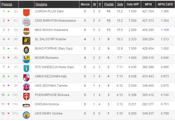 Po pięciu kolejkach trzecioligowych zmagań, nasze siatkarki wciąż niepokonane. Wygrana w sobotnim meczu z Krynicą Zdrój, pozwoliła seniorskiej drużynie Sokoła, objąć pozycję lidera tabeli. Po blisko 200km podróży do miasta Kiepury i Nikifora siatkarki przystąpiły do blisko godzinnej rozgrzewki. Zmęczenie pokonanym dystansem dało się zauważyć w początkowej fazie gry. Jednak dobra zagrywka Karoliny Tysarczyk szybko spowodowała, że na tablicy wyników widniał wynik 6:1 dla Zatora..Pierwszy set wygrany dość łatwo 25:14 i drugi również podobnie 25:15 spowodowały, że w trzecim, drużyna mogła pokusić się o przeprowadzenie pewnego poligonu doświadczalnego. W warunkach meczowych zawodniczki mogły wdrażać taktykę szlifowaną na ostatnich treningach. W meczu tym, miały okazję zagrać wszystkie zawodniczki, które w tym dniu znalazły się w składzie pierwszej drużyny Cordii Plus Zator.