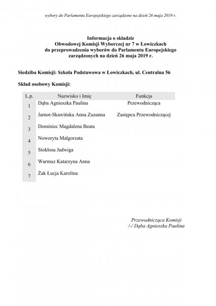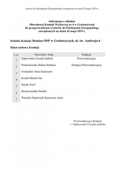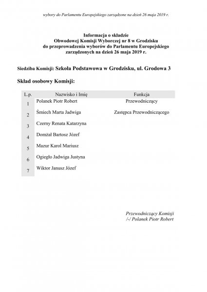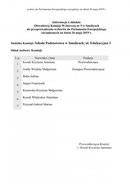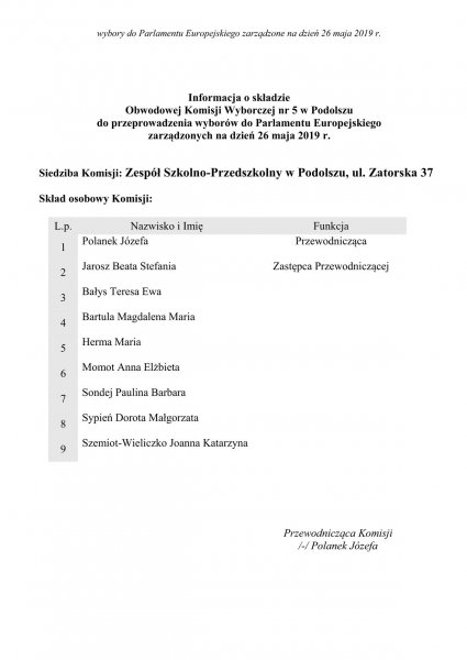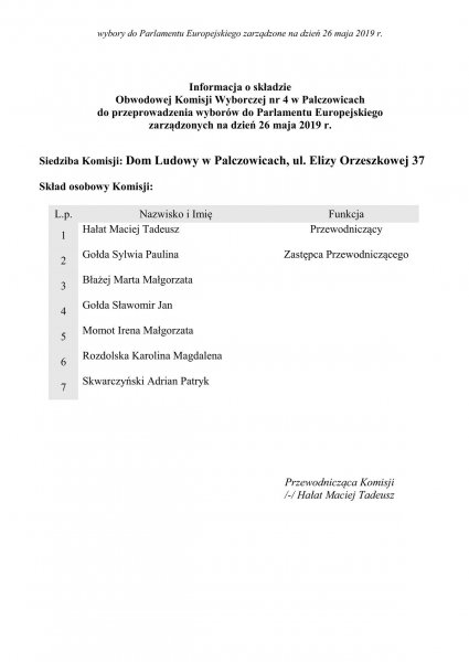 Informacja o składach Obwodowych Komisjach Wyborczych w Gminie Zator do przeprowadzenia wyborów do Parlamentu Europejskiego zarządzonych na dzień 26 maja 2019 r. 2019-05-13