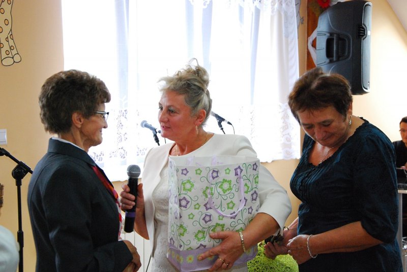 Na ręce Przewodniczącej Koła posypały się listy gratulacyjne, prezenty i kwiaty od zaproszonych gości, władz lokalnych, koleżanek z Kół Gospodyń Wiejskich i Stowarzyszeń z terenu Gminy Zator.