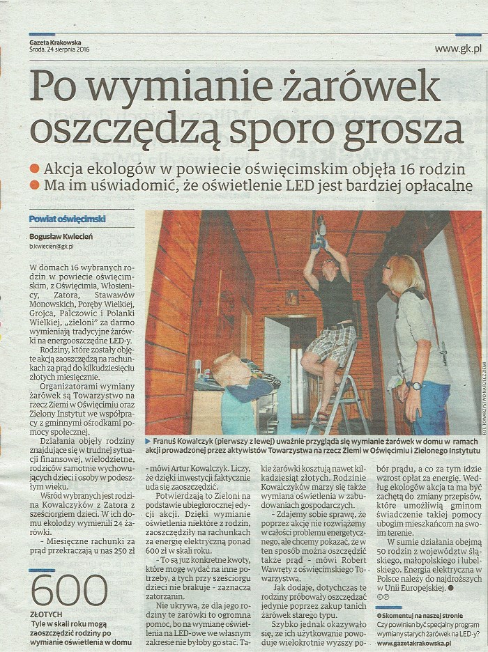 źródło: Gazeta Krakowska, nr 197 (20 806)//ISNN 2353-6144// NR INDEKSU 35015X, z dnia 24.08. 2016 r., Małopolska zachodnia, wydanie C