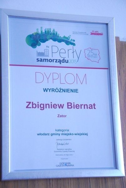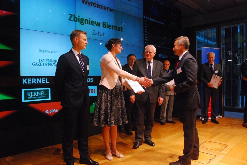 Uroczysta Gala odbyła się z siedzibie Giełdy Papierów Wartościowych. Wśród grona nagrodzonych wyróżniono Burmistrza Zatora Zbigniewa Biernata, który zajął 5 miejsce w kategorii gmin miejsko – wiejskich.