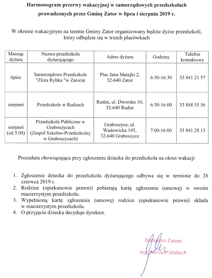 DYŻURY WAKACYJNE PRZEDSZKOLI W ROKU 2019 2019-06-12