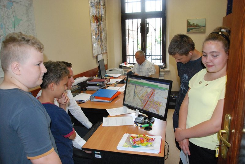 Podczas wizyty młodzież wypełniała karty spraw w tym m.in. Wniosek o wydanie dowodu osobistego– w Dziale Administracyjnym i Spraw Obywatelskich, Wpis do ewidencji działalności gospodarczej - w Dziale Rozwoju, Oświaty i Zdrowia, Wniosek o wydanie warunków podłączenia do gminnej sieci kanalizacji sanitarnej – w Dziale Inwestycji i Programów Europejskich, Wydawanie, wypisów i wyrysów w sprawie przeznaczenia terenu w planie zagospodarowania przestrzennego lub z studium uwarunkowań i kierunków zagospodarowania – w Dziale Gospodarki Przestrzennej i deklarację w sprawie podatków od środków transportu – w Dziale Finansowym.