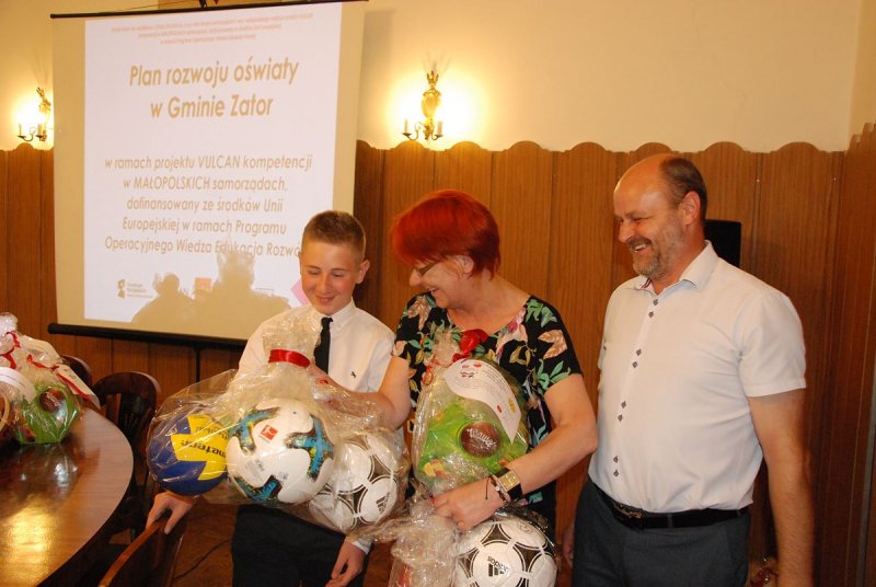 Na zakończenie Młody Burmistrz wraz z Burmistrzem Zatora z okazji Dnia Dziecka wręczyli na ręce dyrektorów prezenty dla uczniów i przedszkolaków Gminy Zator.