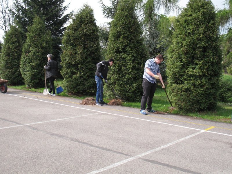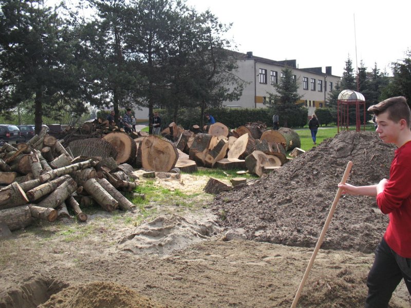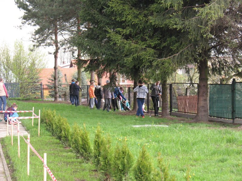 Jak co roku młodzież klas IV-VI i gimnazjum pod nadzorem nauczycieli porządkowała teren wokół szkoły. Każdy wyposażony został w odpowiedni sprzęt: miotłę, grabie i inne. Młodsi uczniowie grabili liście i igliwie, zamiatali drogi i place wokół budynku szkoły. Młodzież gimnazjalna wykonywała cięższe prace: plantowała ziemię, siała trawę, wyrywała chwasty przy parkingach i chodnikach oraz układała drewno.