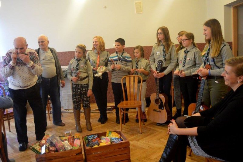 20 grudnia wraz z ks. Robertem Jończykiem delegacja harcerzy z drużynową Joanną Momot i drużynową zuchów Magdaleną Wieczorek pojechała do Oświęcimia , aby odwiedzić podopiecznych Dziennego Domu Pomocy. Po gorącym przywitaniu przez seniorów, wszyscy usiedli przy wspólnym stole, aby wspólnie napić się gorącej herbaty . Czas miło upłynął na anegdotkach o dawnych czasach, którymi chętnie dzielili się seniorzy. Następnie nadszedł czas radosnego muzykowania i przy akompaniamencie gitary wspólnego śpiewania kolęd.