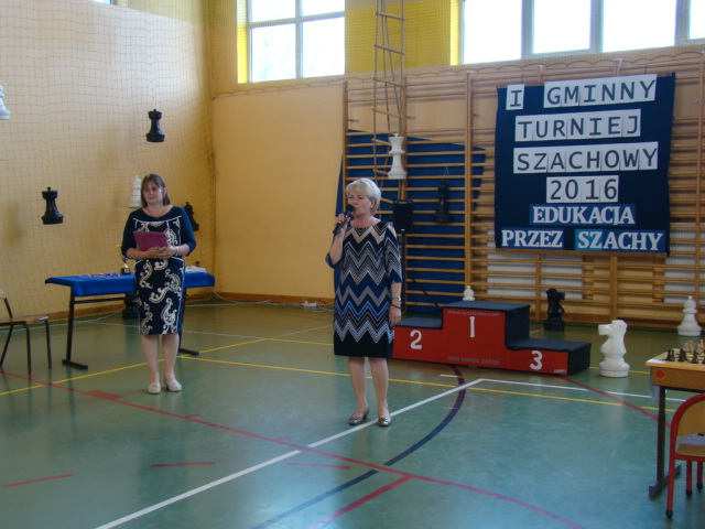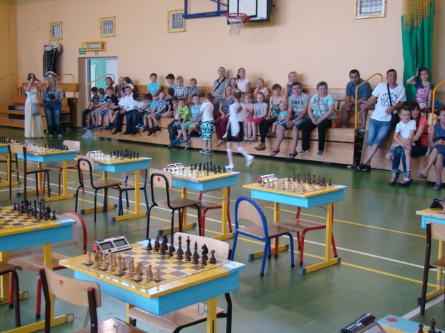 Na początku turnieju p. Dyrektor Renata Pękala powitała przybyłych gości, zawodników, rodziców oraz nauczycieli. Oficjalnego otwarcia dokonał pan Burmistrz. Na starcie stanęło  31 uczniów z klas I i 36 zawodników z klas II i III. Rozgrywki były prowadzone systemem szwajcarskim  na dystansie 7 rund. Runda trwała maksymalnie 20 minut . Na zawodach obowiązywały przepisy Kodeksu Szachowego. Sędzią zawodów był pan Paweł Mroziński z Krakowa. Zawody przebiegały w miłej atmosferze, czas szybko mijał. Po rozegraniu wszystkich rund ogłoszono wyniki. Pani Dyrektor wraz z panem Burmistrzem udekorowali medalami zwycięzców na podium. Wyniki przedstawiały się następująco: