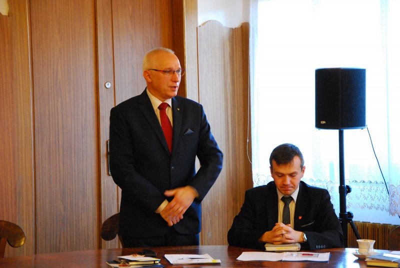 Radny Senior Wiesław Susek złożył gratulacje nowemu Przewodniczącemu i życzył owocnej współpracy .