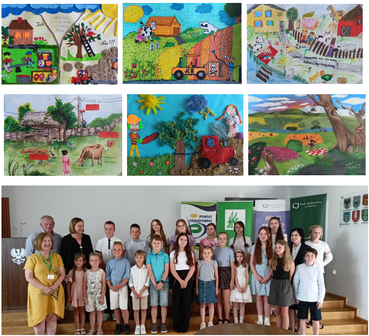 XIV Ogólnopolski Konkurs Plastyczny dla Dzieci pod hasłem „Bezpiecznie na wsi mamy, bo o zdrowie dbamy” został zakończony. Konkurs od lat cieszy się dużą popularnością. W tym roku w konkursie wzięło udział 376 uczniów z 17 szkół powiatu oświęcimskiego. Laureaci i wyróżnieni uczniowie otrzymali nagrody rzeczowe, które wręczone zostały uroczyście na gali konkursowej w dniu 18 czerwca 2024 r. W uroczystości wręczenia nagród uczestniczyli zaproszeni goście: Pani Teresa Jankowska Wicestarosta Oświęcimski, Pani Katarzyna Lalik Prezes Banku Spółdzielczego w Zatorze, Pan Wojciech Procner Przewodniczący Rady Rolników Powiatu Oświęcimskiego oraz Pani Urszula Hudzik Kierownik Placówki Terenowej KRUS w Oświęcimiu.