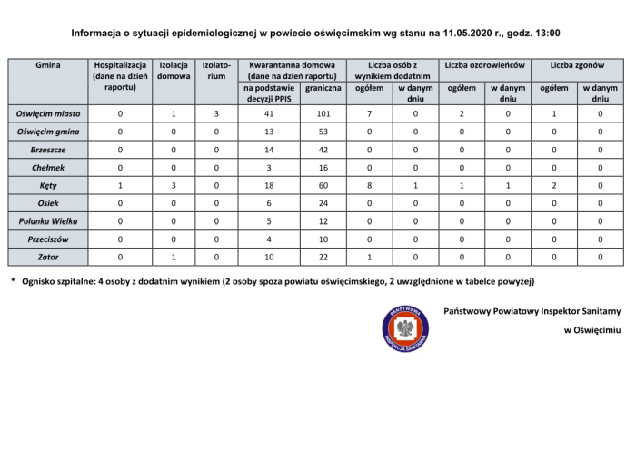 Informacja o sytuacji epidemiologicznej w powiecie oświęcimskim 2020-05-11