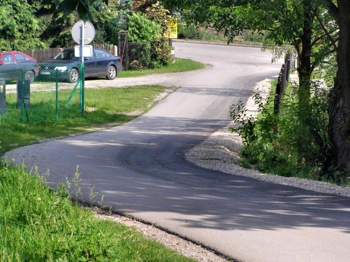 Opis inwestycji: Wykonano poszerzenie drogi (0,8m asfaltu + 0,5m pobocza) na długości 95 mb