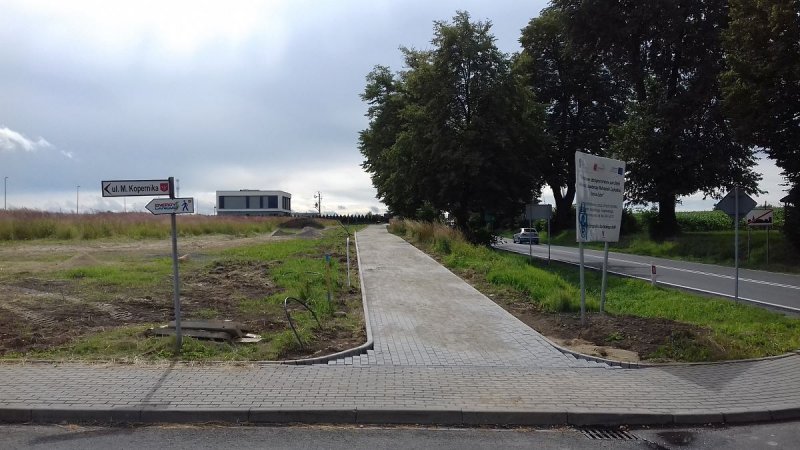 - Odcinek chodnika na naszych działkach, od ul. Kopernika do pasa drogi krajowej (ok. 400 mb) wykonuje na zlecenie Gminy firma budowlana, za kwotę 150.000,00 zł.
