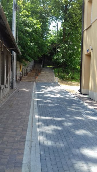 Zakończenie robót przy Przebudowie ul. Stromej w Zatorze wraz z przebudową schodów terenowych i odwodnienia oraz budową oświetlenia ulicznego. Wartość robót 277.940,01 zł.