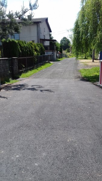 Modernizacja drogi wewnętrznej w Laskowej, na dł. ok. 120 mb, frezem asfaltowym ze skropieniem. Wartość robót 16.605,00 zł.