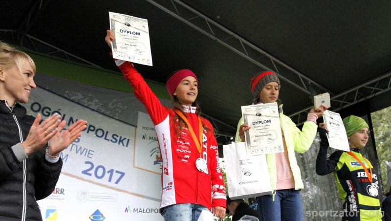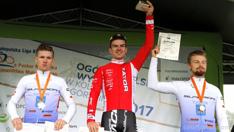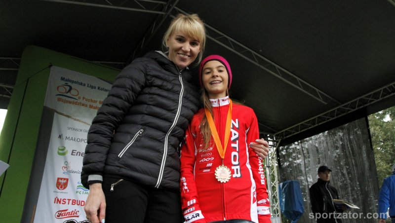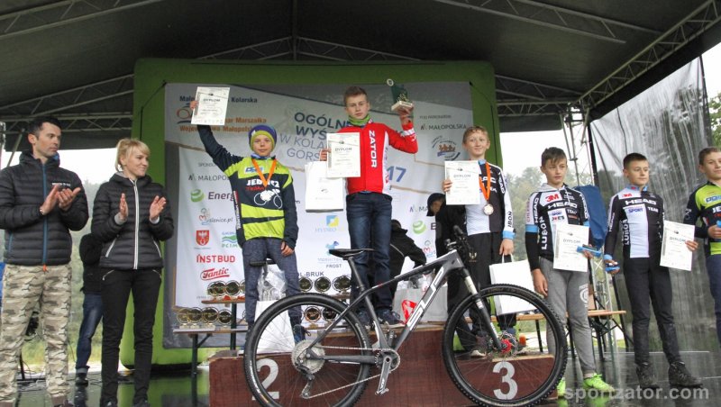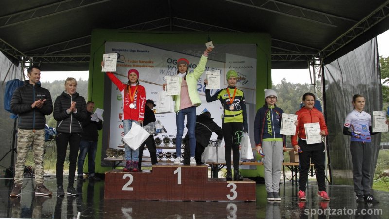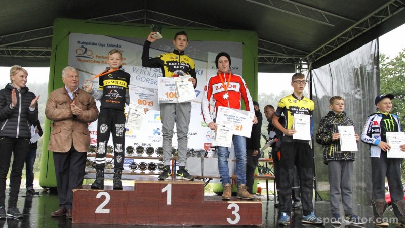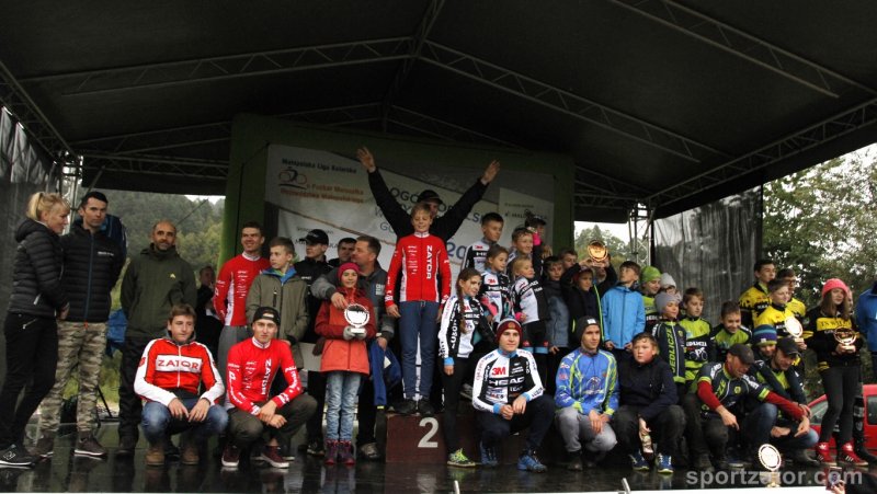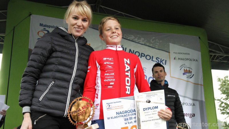 Znakomity finał Małopolskiej Ligi Kolarskiej w wykonaniu naszych kolarzy. Podczas dekoracji zwycięzców dało się słyszeć wśród kibiców: - „Co oni jedzą w tym Zatorze” i czy to czasem nie sprawka smacznego i pożywnego karpia. Zdecydowane zwycięstwa w większości kategorii wiekowych i miejsca na podium w młodzikach i żakach to już standard w wykonaniu kolarzy Sokoła. Tym razem Myślenice gościły najlepszych kolarzy regionu Polski południowej. Dotarli nie tylko najlepsi ale również najwytrwalsi zawodnicy z kilkudziesięciu klubów. Zmagania w finale to nie tylko walka z arcytrudną trasą, mocnymi rywalami ale również niestety z ulewnym zimnym deszczem i wszechobecnym błotem oraz podtopieniami na trasie. W kategorii elita zwyciężył Michał Topór, w kategorii juniorów zwycięża Stanisław Nowak, w juniorach młodszych zwycięzcą zostaje Michał Śliwiński, jako trzeci młodzik do mety dociera Kamil Łaziński a kilka pozycji za nim Maks Wiśniowski. W najmłodszej kategorii żaków, wśród chłopców lideruje Dawid Śliwiński a wśród dziewcząt, na drugim miejscu zawody kończy Inez Durlak. Zawodników dekorowała Mistrzyni Świata, wielokrotna Mistrzyni Polski Anna Szafraniec – Rutkiewicz oraz jeden z najlepszych polskich kolarzy szosowych – Marek Rutkiewicz. W zawodach nie wystąpiła Gabriela Wojtyła, która reprezentowała klub podczas Bike Expo oraz Marcin Sermak z powodu kontuzji. W klasyfikacji generalnej całej ligi, zatorski klub zajmuje drugie miejsce w rankingu teamów. Szczególna podziękowania dla wszystkich rodziców i sympatyków klubu, którzy licznie przybyli dopingować zawodników oraz pomagać przy obsłudze kolarzy podczas wyścigu. Obecnie zawodnicy przygotowują się do Pucharu Polski, który odbędzie się już w sobotę w Głuchołazach.