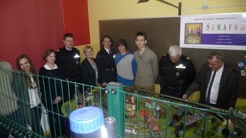 Po spotkaniu członkowie Koła Modelarskiego „SEMAFOR” działającego w naszej szkole zaprezentowali naszym gościom makietę kolejową, którą budują i rozbudowywują już drugi rok. Makieta wzbudziła bardzo duże zainteresowanie na przedstawicielach Urzędu Transportu Kolejowego i Straży Ochrony Kolei.