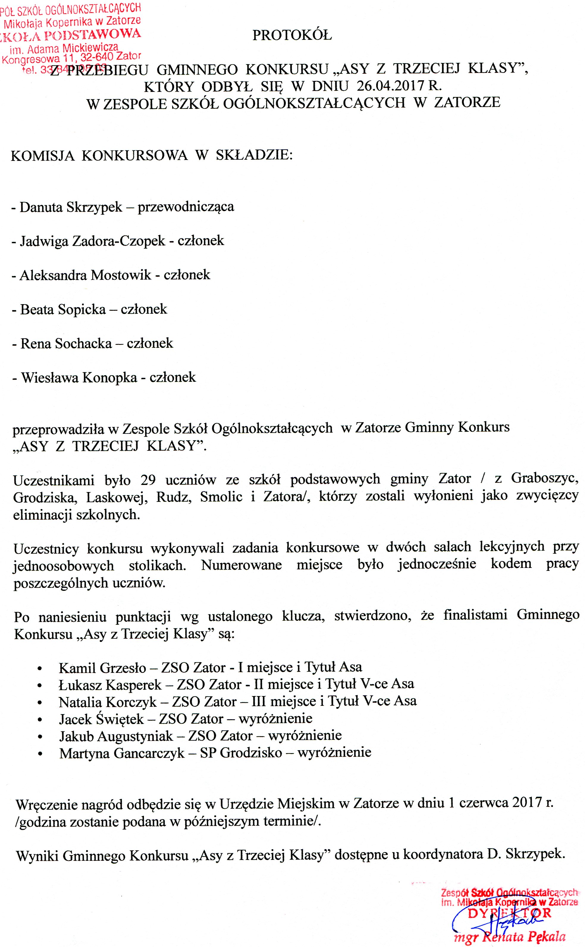 Protokół z konkusu