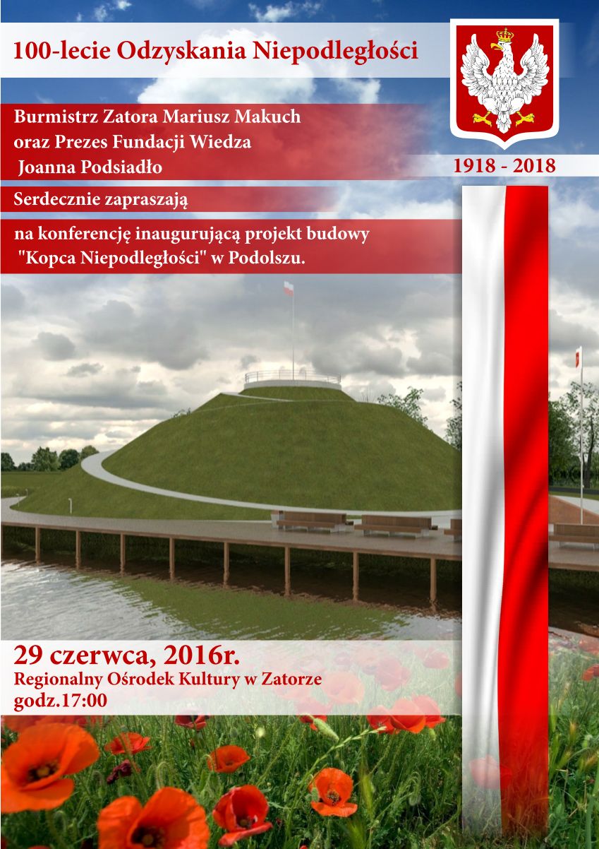 Burmistrz Zatora – Mariusz Makuch podpisał list intencyjny z Fundacją „Wiedza” z Krakowa o współpracy przy budowie „Kopca Niepodległości” w Podolszu, który powstanie dla upamiętnienia 100-lecia odzyskania naszej niepodległości w 1918 r. Inicjatywa ta zrodziła się w Fundacji, która uznała właśnie naszą gminą, jako najlepsze miejsce dla tego monumentalnego obiektu architektonicznego.