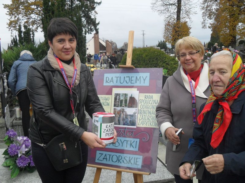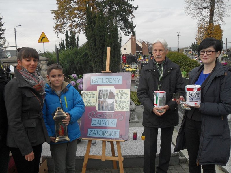 W dniu 1 listopada 2016 r. na zatorskim cmentarzu komunalnym odbyła się kwesta podczas, której zebrano łącznie 9172,73 zł oraz 1,5 USD. W kweście wzięły udział 34 osoby. Zbiórkę przeprowadzono od godziny 9. 30 do 16.00, przy 3 bramach wejściowych cmentarza. Organizatorem zbiórki tradycyjnie była Rada Społeczna Ochrony i Renowacji Zatorskich Zabytków oraz Towarzystwo Miłośników Ziemi Zatorskiej. Zebrane środki będą przeznaczone na dalsze prace renowacyjne zabytkowych nagrobków. W okresie 15 lat odnowiono zatorskie zabytki na kwotę ponad 320 tysięcy złotych. Serdecznie dziękujemy wszystkim ofiarodawcom za wsparcie tych działań.