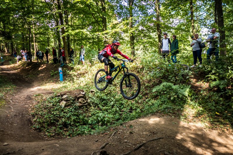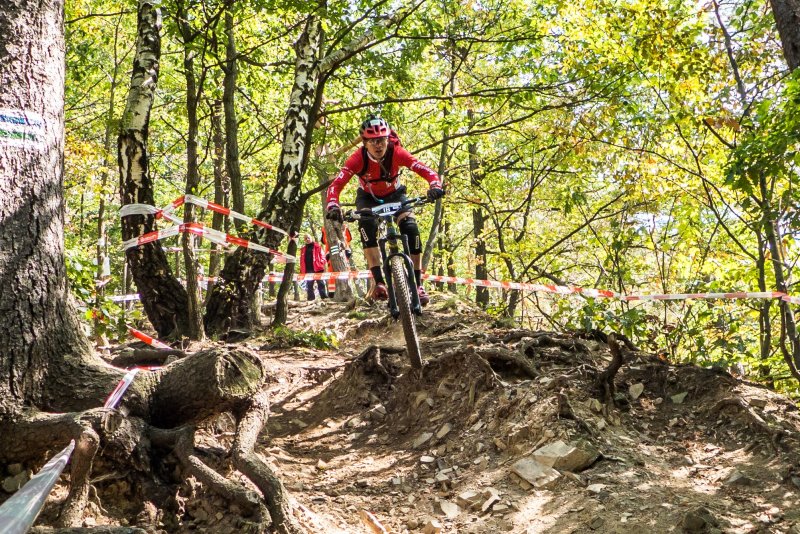 To pierwszy medal dla naszego klubu, w tej odmianie kolarstwa górskiego. Enduro, to wysoce extremalny sport, polegający na pokonywaniu bardzo trudnych tras, podzielonych na odcinki specjalne. Michał, znany jest z tego, iż bardzo dobrze „dogaduje” się z każdym ze swych rowerów i to w każdym możliym terenie. Dlatego padł pomysł, na próbie sił w Mistrzostwach Polski Enduro. Organizacja tego przedsięwzięcia nie była łatwa. Nie mając specjalistycznego sprzętu i większego doświadczenia, przez wielu, byliśmy skazani na porażkę. Jednak.. Właśnie – czego się nie robi dla realizacji marzeń. Zaufał nam producent rowerów, firma ROCK MACHINE. Na prośbę o udostępnienie roweru, właściwie w tym samym dniu dostaliśmy zaproszenie do fabryki, po najwyższej klasy sprzęt. Wizyta w Czechach, krótkie spotkanie z działem marketingu i mamy rower w bagażniku. Lekkie modyfikacje ogumienia, mleko TREZADO w miejsce dętek i Michał zaczyna uczyć się wykorzystywać możliwości, jakie daje ten rower.
