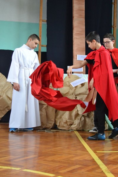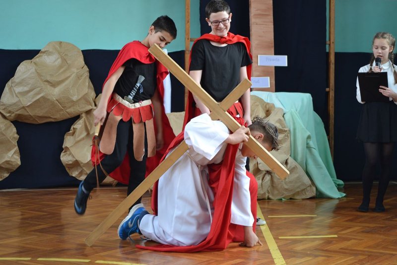 Święta Wielkanocne zbliżają się wielkimi krokami. W sklepach, szkołach i naszych domach pojawiają się pierwsze ozdoby: pisanki, stroiki, baranki oraz zające wielkanocne. Osoby uczęszczające na zajęcia szkolnego Koła Religijnego (działającego w Szkole Podstawowej w Zatorze) postanowiły przybliżyć nam temat zbliżających się uroczystości. Pod opieką pani Beaty Świętek przygotowały w sposób prosty i zrozumiały dla każdego z nas Misterium Męki Pańskiej – Sąd nad Jezusem. Rozpoczęło się nietypowo od tytułowego sądu z prokuratorem, obrońcą, sędzią i świadkami. Później młodzi ludzie odgrywali najważniejsze elementy drogi krzyżowej z rozważaniami zakończonymi refleksjami. Misterium zostało scalone wielkopostnymi pieśniami wykonywanymi przez dwie uczennice. Był to dla nas czas refleksji i zadumy.