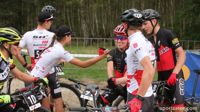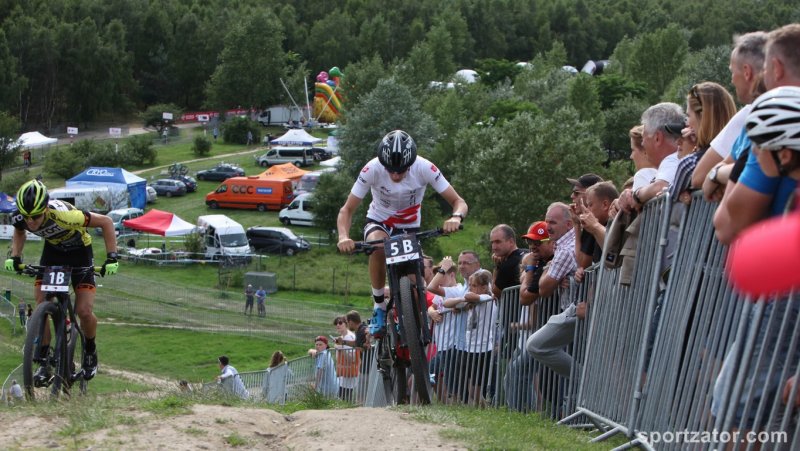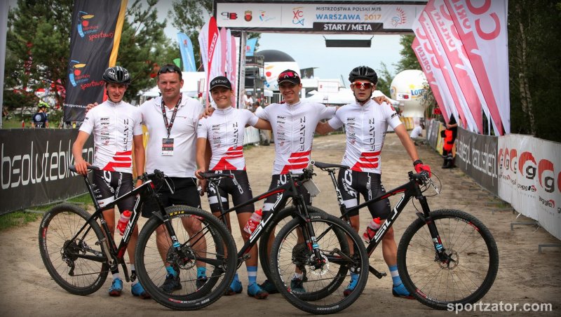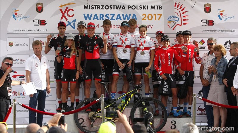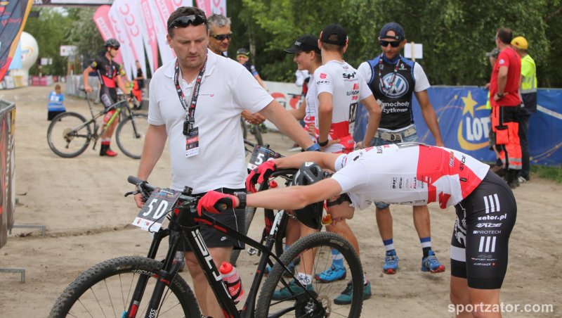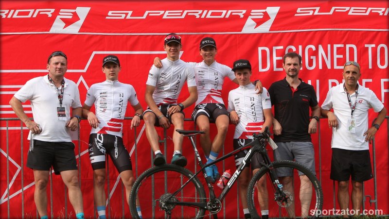 Należy dodać, iż zdobyty w debiucie i to przez najmłodszy skład, spośród ekip walczących o medale. Michał Topór, Michał Śliwiński, Gabriela Wojtyła i na ostatniej zmianie Stanisław Nowak – w takim składzie i w takiej kolejności nasi kolarze walczyli o medal. Wyścig dobrze rozpoczął Michał Topór, który wyprowadził Zator na czwartą pozycję spośród 13 najlepszych drużyn w Polsce. Michał Śliwiński wyruszył na trasę jako najmłodszy zawodnik wśród wszystkich startujących. Rywalizował ze starszymi od siebie, utytułowanymi i doświadczonymi zawodnikami. Mimo to, nasza drużyna wciąż utrzymywała się w czołowej szóstce, a po niesamowitym finiszu i wyprzedzeniu aktualnego Mistrza Polski w swojej kategorii, Michał wjeżdża w strefę zmian jako piąty zawodnik wyścigu! Emocje sięgają zenitu, na trasę wyrusza Gabriela Wojtyła. Za nią niestety w pościg ruszają męskie zmiany naszych rywali jednak Gabriela znakomicie pokonuje ciężką fizycznie i trudną technicznie trasę. Dogania i wyprzedza sztafetę z Wrocławia. Na metę swojej rundy Gabriela dojeżdża na piątej pozycji ze stratą ponad minuty do trzeciej pozycji i 1:47s do srebra. Na trasę wyrusza Stanisław Nowak. Rywalizacja wkroczyła w decydującą fazę. Na czwartej pozycji znajduje się sztafeta Mistrzów Polski z 2015 roku a na trzeciej ubiegłoroczni Mistrzowie! Teraz losy medali w rękach, a właściwie nogach naszego juniora. Doping kibiców niósł naszego zawodnika w walce o tytuł. Sukcesywnie topniała strata do poprzedzających drużyn. Na telebimie publiczność śledziła sytuacje na trasie z zapartym tchem. W połowie dystansu ostatniej rundy jesteśmy na czwartym miejscu. Nawrót, szybka sekcja techniczna i Zator pochłania kolejną sztafetę. Jedziemy na pozycji medalowej – ale…? To za mało! Stanisław Nowak rozpoczyna szaleńczy pościg za wiceliderami wyścigu. Strata topnieje bardzo szybko, jednak zostaje coraz mniej dystansu. Kibice zgromadzeni na mecie nie kryli emocji związanych z obrotem sytuacji. Zwycięska ekipa z dwójką olimpijczyków w składzie już na mecie. Teraz pozostało tylko jedno pytanie? SUPERIOR Zator czy SGR SPECIALIZED – kilka sekund i wszystko jasne – zza zakrętu wyłania się sztafeta Srebrnej Góry. Mamy BRĄZ Mistrzostw Polski! Do srebra zabrakło kilkanaście sekund. Jest to największy sukces naszego UKS w jego dziesięcioletniej historii. Młodą perspektywiczną drużyną, walczymy z najlepszymi ekipami Polski, a przed nami jedynie grupy zawodowe! To będą nasze Najlepsze Mistrzostwa Polski!