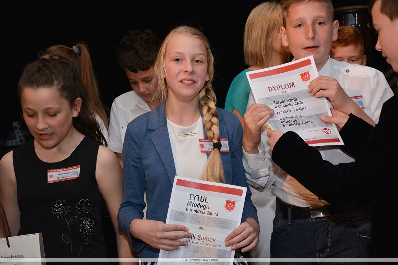 Mariusz Makuch – Burmistrz Zatora przekazał swój gabinet najmłodszym mieszkańcom naszej gminy. Tradycyjnie już w dniu 1 czerwca władze w zatorskim ratuszu obejmuje Młody Burmistrz Zatora. Tym razem przez jeden dzień w Zatorze rządzi zwycięska drużyna ze szkoły w Graboszycach w składzie: Julia Stybak (która objęła fotel Burmistrza Zatora) Aleksander Słomka, Kamil Łaziński i Emilia Kokoszka. Zanim drużyna z Graboszyc mogła cieszyć się ze zwycięstwa, musiała pokonać swoich rywali i odpowiedzieć na szereg pytań z różnych dziedzin, w tym ze znajomości Zatorszczyzny.