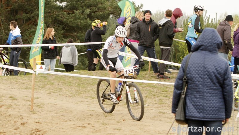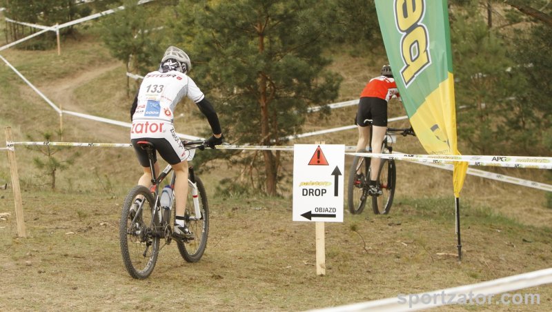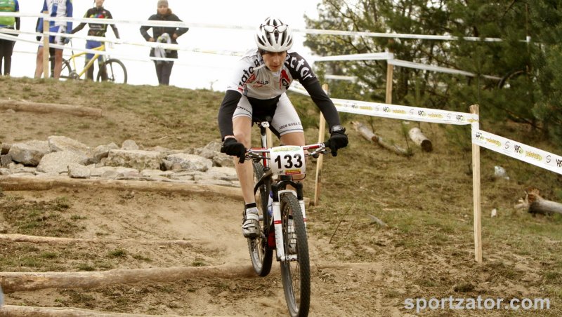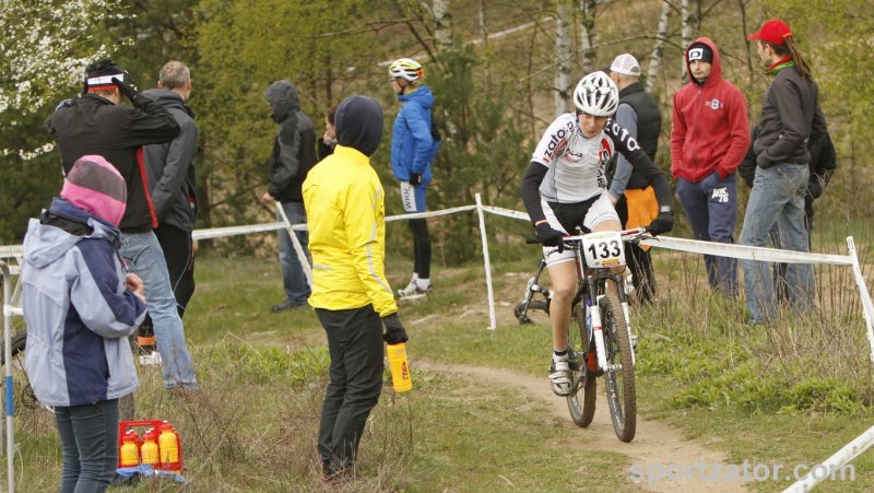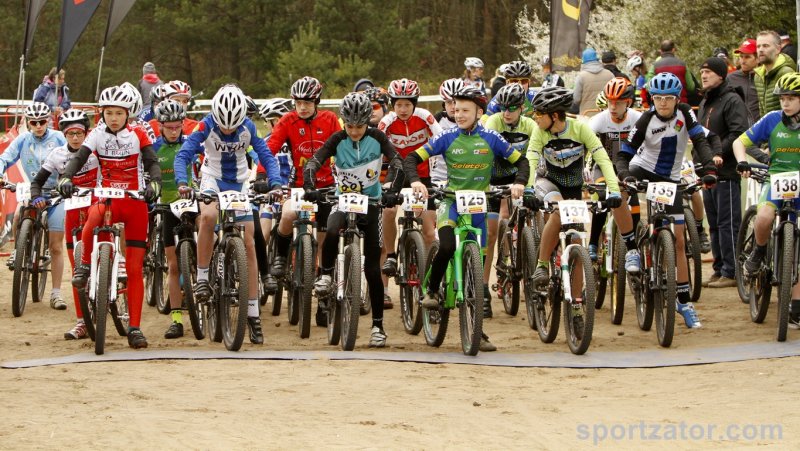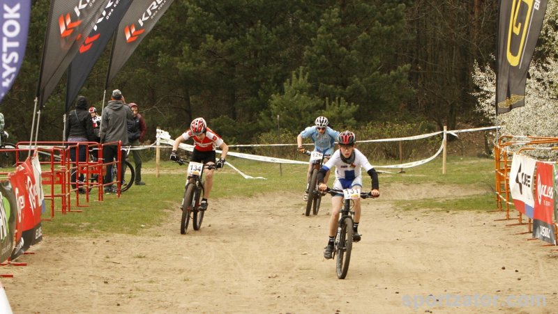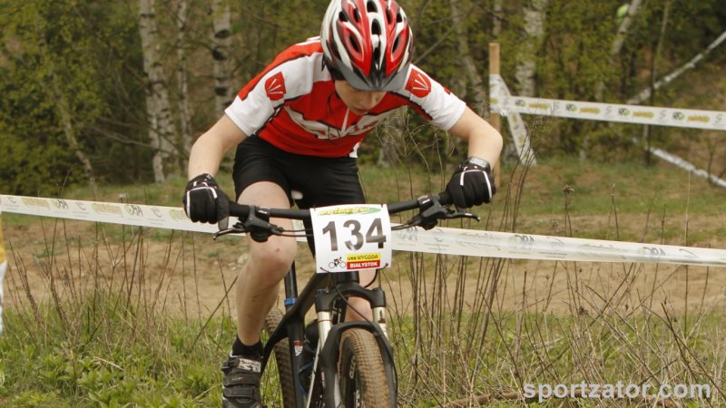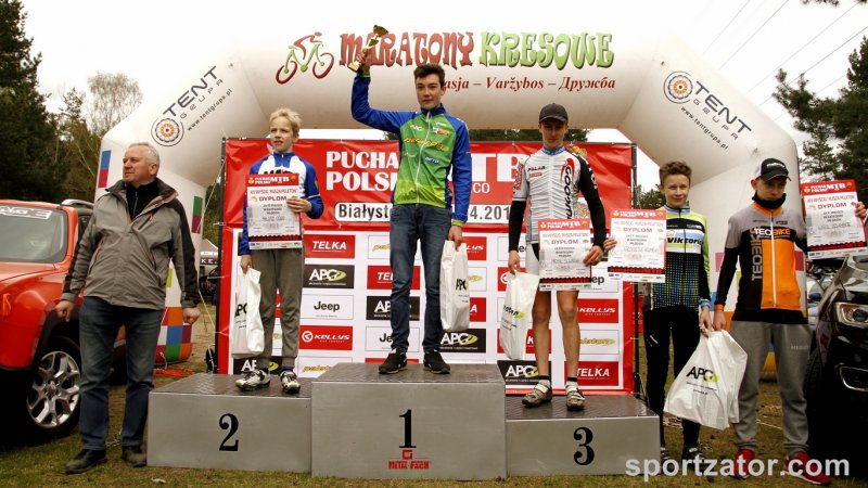 W Białymstoku odbył się pierwszy z wyścigów zaliczanych do Pucharu Polski MTB w formule olimpijskiej. Na linii startu stanęli wszyscy najlepsi zawodnicy kategorii młodzik z całej Polski. Wśród nich nie zabrakło kolarzy zatorskiego SOKOŁA. Michał Śliwiński i Marcin Sermak przybyli do Białegostoku walczyć o swoje pierwsze pucharowe punkty w swojej karierze. Losowanie na starcie nie było łaskawe dla Michała Śliwińskiego. Komputer „ustawił” naszego zawodnika na przedostatniej pozycji wśród 25 kolarzy. Nieco więcej szczęścia miał młodszy o rok Marcin Sermak, na liście startowej otrzymał pozycję nr 8. Marcin bardzo dobrze spisał w tak doborowej grupie rywali i bardzo szybko wysunął się na czoło peletonu. Nieco więcej pracy w przebicie się do czołówki musiał włożyć Michał. Jednak i on po wspaniałej walce na trasie szybko zajął miejsce w czołówce. Niestety kosztowało go to trochę sił i na wąskim fragmencie trasy zabrakło koncentracji i nasz zawodnik wypadając z trasy uszkodził niegroźnie rower, lecz kontynuując jazdę do boxu technicznego stracił kilka pozycji. Postój w strefie techniczne i naprawa kosztowała kolejne lokaty. Michał nie poddał się