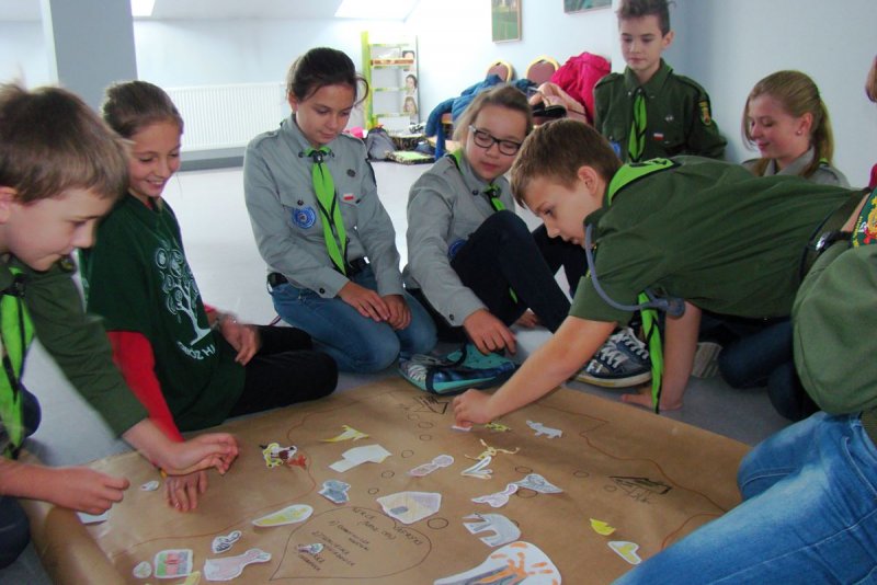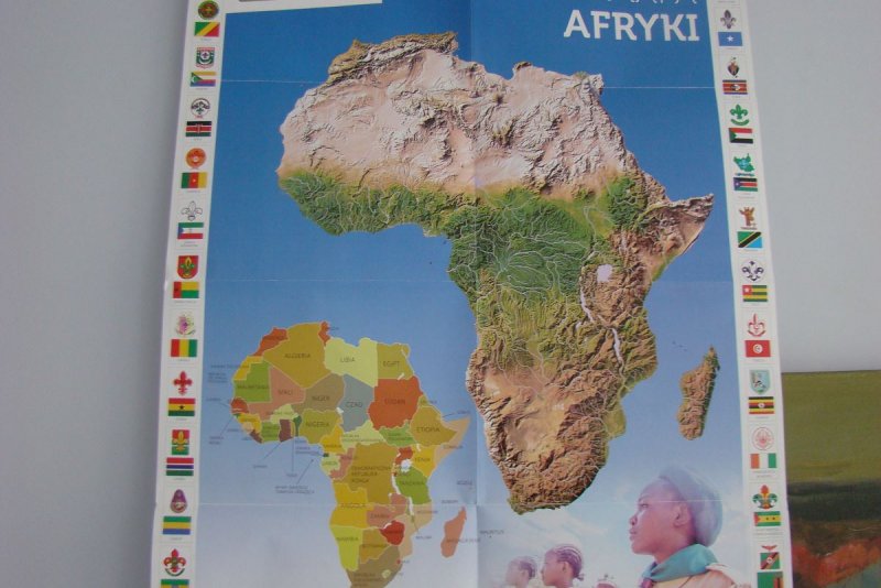 Na zdjęciach harcerze w czasie pracy nad mapą Afryki.