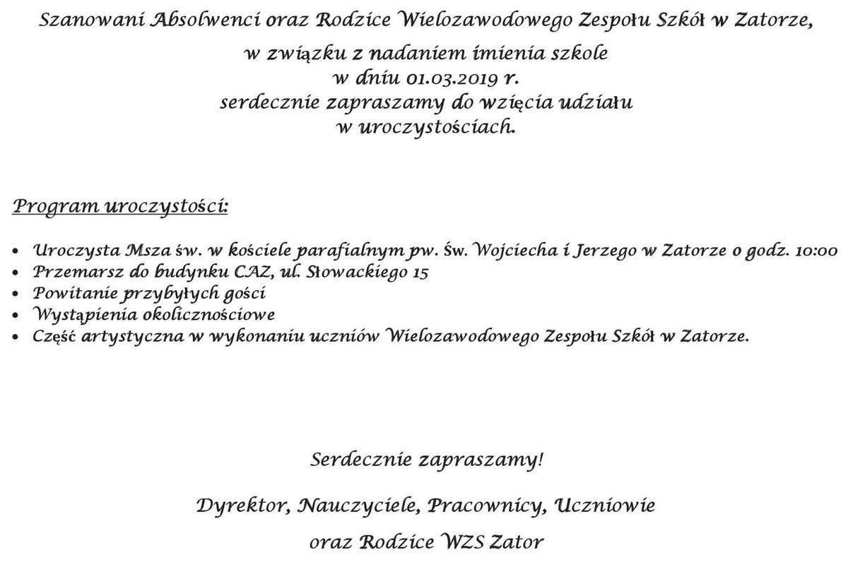 adanie imienia Rotmistrza Witolda Pileckiego oraz sztandaru Wielozawodowemu Zespołowi Szkół w Zatorze