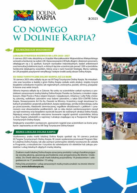 Prezentujemy trzeci numer newslettera Doliny Karpia w 2023 roku a w nim najważniejsze wiadomości z ostatnich trzech miesięcy: