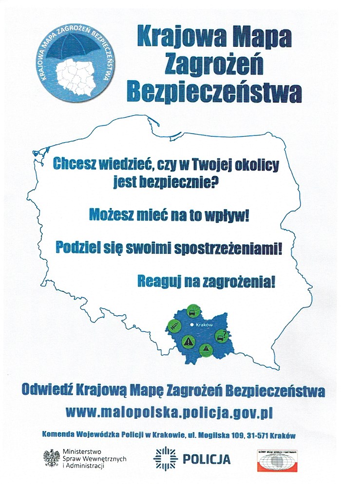 Ruszył program Krajowej Mapy Zagrożeń Bezpieczeństwa. To innowacyjne narzędzie, mające służyć głównie poprawie bezpieczeństwa mieszkańców, w wersji pilotażowej będzie funkcjonowało na terenie garnizonu stołecznego Warszawy, Podlasia i Pomorza. Później swoim zasięgiem obejmie również cały kraj. „Mapa” jest dostępna na stronie internetowej Komendy Stołecznej Policji, a jej obsługa została zaprojektowana tak, aby bezproblemowo, wręcz intuicyjnie mógł z niej skorzystać każdy obywatel.
