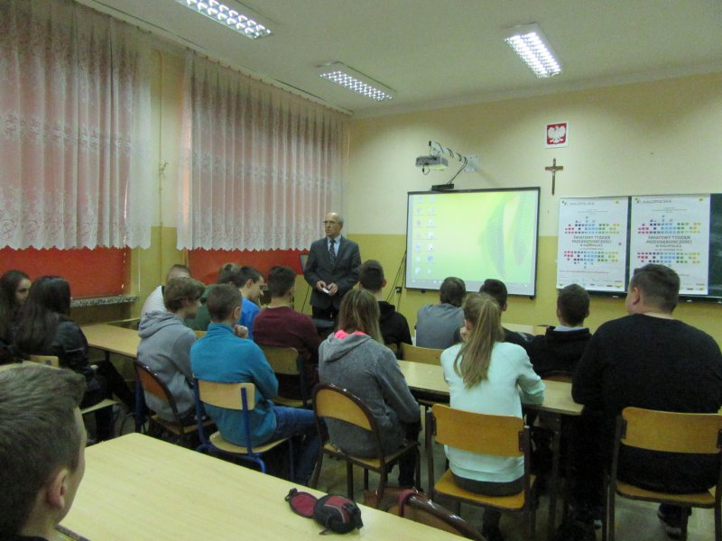 Wielozawodowy Zespół Szkół w Zatorze już po raz drugi wspólnie z Urzędem Marszałkowskim Województwa Małopolskiego włączył się w obchody Światowego Tygodnia Przedsiębiorczości. W dniach 14 – 20 listopada 2016r. w naszej szkole odbyły się liczne spotkania z przedstawicielami przedsiębiorstw, banków oraz lokalnych instytucji. Swoją obecnością zaszczycili nas: