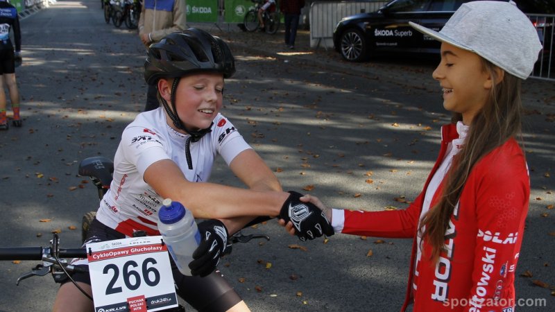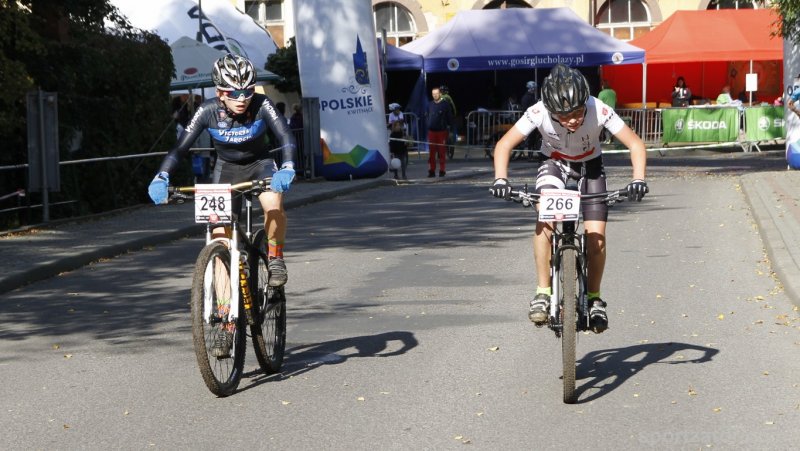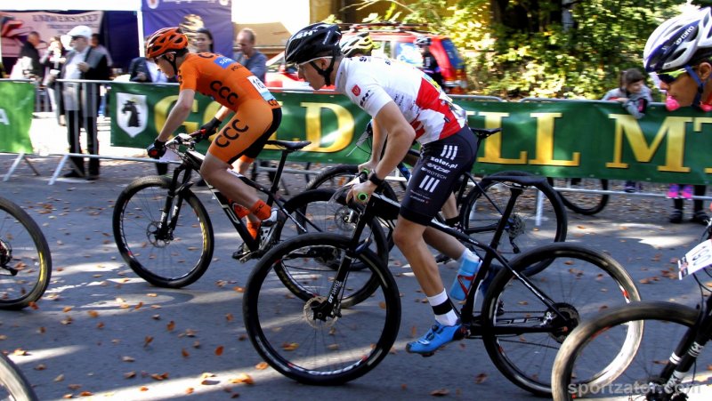 Wyścigi w Głuchołazach rozpoczęły się od najmłodszych kategorii wiekowych. Tu już w pierwszym starcie nasza „żakini” Inez, odnotowała znakomity start zajmując drugie miejsce. Pod nieobecność Marcina Sermaka i Kamila Łazińskiego, w młodzikach reprezentował nas Maks Wiśniowski. Był to jego debiut w imprezie tej rangi i z taką obsadą. Startując z ostatniej pozycji pokonał kilkunastu rywali, ostatecznie plasując się w okolicy 20 miejsca . Michał Śliwiński, po znakomitym wyścigu zajął piątą lokatę wśród najlepszych polskich juniorów młodszych. W Juniorach, Stanisław Nowak nie dał szans konkurencji pewnie zwyciężając w swoim wyścigu. Staszek przypieczętował tym zwycięstwem znakomity sezon w barwach Sokoła, zdobywając w tym roku 3 medale Mistrzostw Polski – w tym 2 złote! Forma Gabrieli Wojtyły zachwyca w tym sezonie wszystkich. Zachwyca i zaskakuje. Tym razem, Gabi pewnie zwycięża w swojej kategorii do lat 23, pozostawia za sobą utytułowane zawodniczki elity, ulegając jedynie naszej reprezentantce na Igrzyska Olimpijskie w Rio – Katarzynie Solus Miśkowicz. Strata 1:36sek do liderki potwierdza znakomity postęp mieszkanki Graboszyc, od tego miesiąca, studentki ATH w Bielsku Białej.
