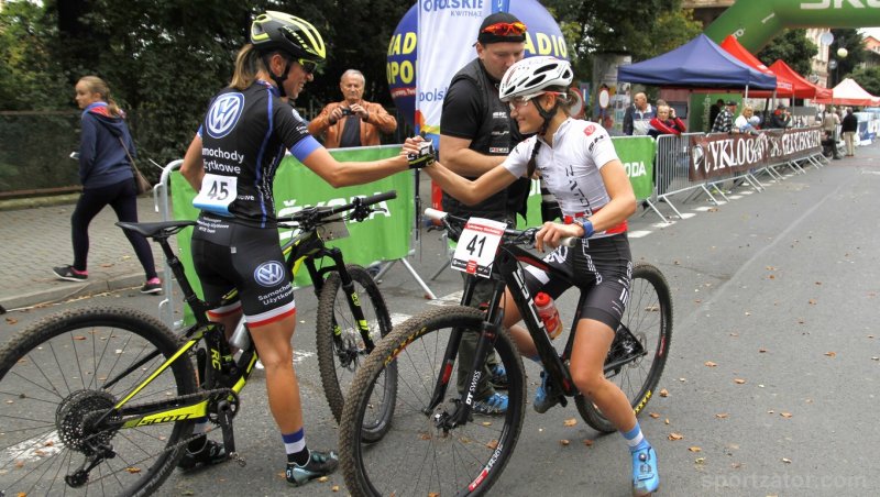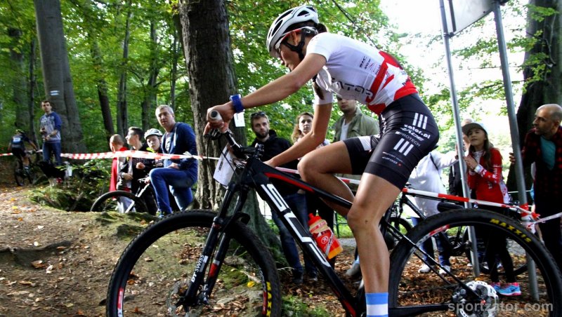 Wyścigi w Głuchołazach rozpoczęły się od najmłodszych kategorii wiekowych. Tu już w pierwszym starcie nasza „żakini” Inez, odnotowała znakomity start zajmując drugie miejsce. Pod nieobecność Marcina Sermaka i Kamila Łazińskiego, w młodzikach reprezentował nas Maks Wiśniowski. Był to jego debiut w imprezie tej rangi i z taką obsadą. Startując z ostatniej pozycji pokonał kilkunastu rywali, ostatecznie plasując się w okolicy 20 miejsca . Michał Śliwiński, po znakomitym wyścigu zajął piątą lokatę wśród najlepszych polskich juniorów młodszych. W Juniorach, Stanisław Nowak nie dał szans konkurencji pewnie zwyciężając w swoim wyścigu. Staszek przypieczętował tym zwycięstwem znakomity sezon w barwach Sokoła, zdobywając w tym roku 3 medale Mistrzostw Polski – w tym 2 złote! Forma Gabrieli Wojtyły zachwyca w tym sezonie wszystkich. Zachwyca i zaskakuje. Tym razem, Gabi pewnie zwycięża w swojej kategorii do lat 23, pozostawia za sobą utytułowane zawodniczki elity, ulegając jedynie naszej reprezentantce na Igrzyska Olimpijskie w Rio – Katarzynie Solus Miśkowicz. Strata 1:36sek do liderki potwierdza znakomity postęp mieszkanki Graboszyc, od tego miesiąca, studentki ATH w Bielsku Białej.