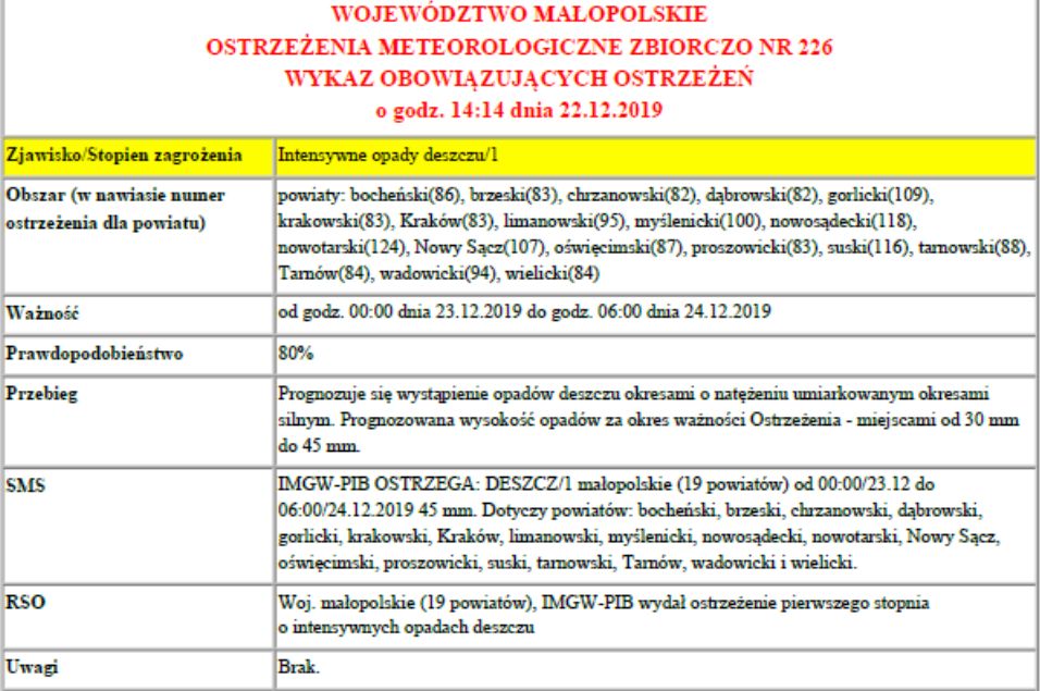 Ostrzeżenie meteo: intensywne opady deszczu 2019-12-23
